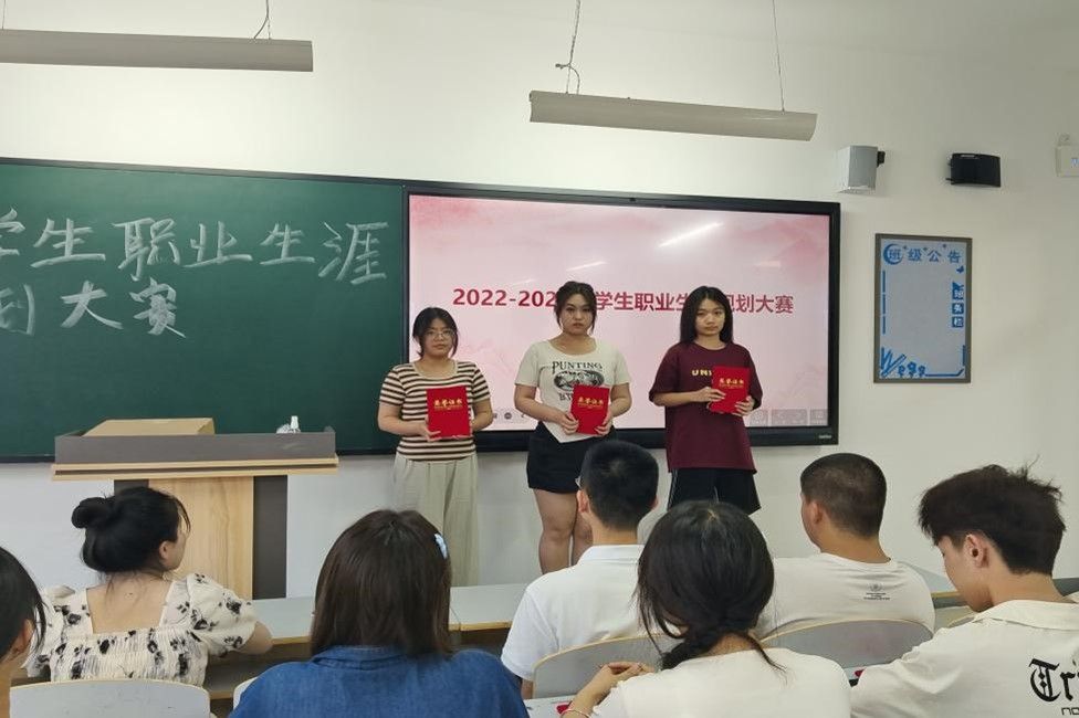 活动中,各参赛选手对自己的职业生涯规划书的认真准备,先后上台作出精彩的演讲,内容紧紧围绕主题,各有特色,比赛现场气氛热烈。选手们从自我认知、职业环境分析、职业目标确定、评估与调整几个方面尽情展示了自己的职业规划。最后评选出一二三等奖以及优秀奖的同学,一等奖是黄馨予同学,二等奖是刘嘉豪、魏布婷同学,三等奖是郝槿霄、王雨然、刘欣茹同学,优秀奖是李欣怡、庞栩、王佳桐、王培慧、魏仁杰、左雷可同学。