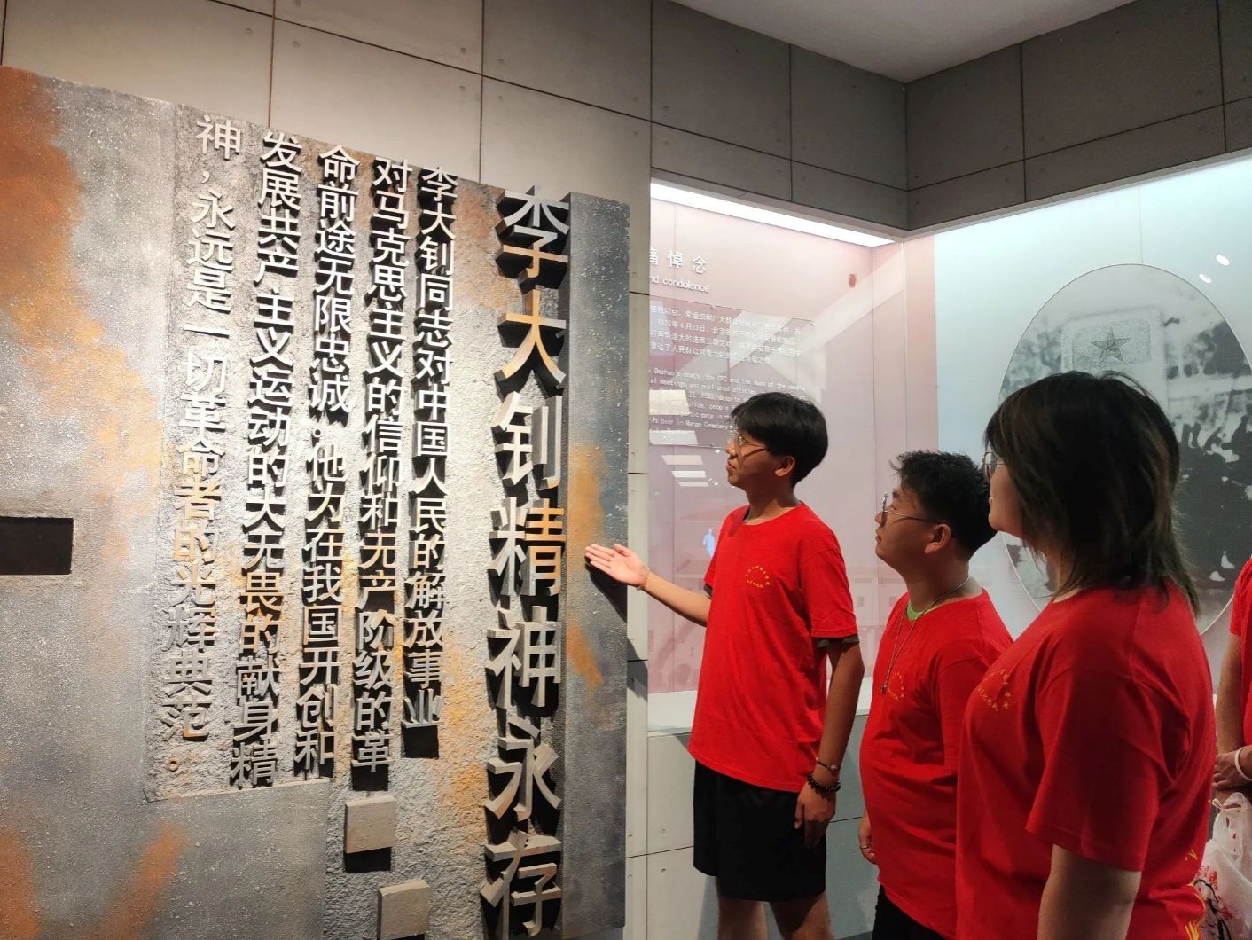 红色记忆队成员温雪姣,杨馨宇和刘佳朋等在指导老师蒙翠平,王峥的带领下,怀着崇敬的心情走进了展馆。李大钊纪念馆整个展览共分三个展厅九个专题对李大钊的一生进行了详细的介绍。