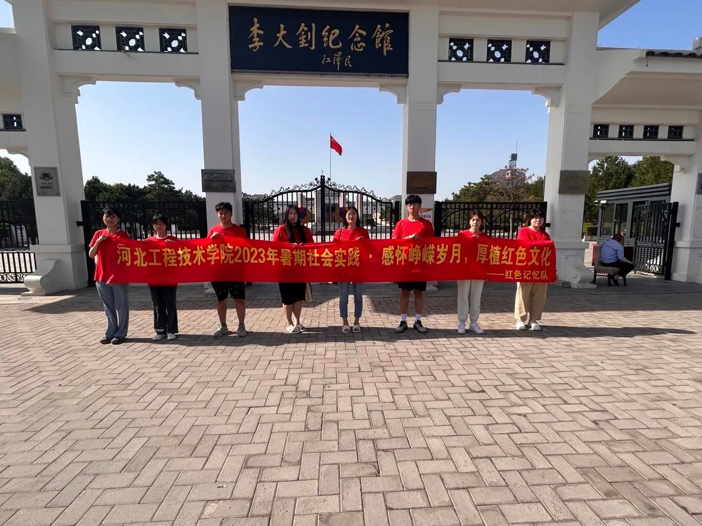 学习二十大精神,传承红色基因;观李大钊纪念管,缅怀革命先烈。7月5日,TYC234CC太阳成集团“感怀峥嵘岁月 厚植红色文化”暑期社会实践·红色记忆队来到了河北省唐山市乐亭县。此次实践成员温雪姣、杨馨宇和陈琦琦等7名同学在指导老师蒙翠平和王峥的带领下前去参观李大钊纪念馆。前期,我们对于李大钊纪念馆在公众号的讲解上进行了解,到达李大钊纪念馆后,实践团队成员开始从外而内的去了解李大钊纪念馆对于大钊精神的写照。