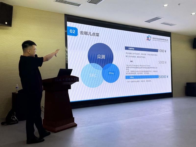 孔令延总监从公司情况简介、公司的核心业务、渗透测试的工作职责、怎样入门、“去哪儿点菜”、渗透测试的相关工具等多方面展开详细而生动的讲座,充分调动了学生学习的渴望和积极性。讲座后,学生积极响应,根据自己的专业和困惑进行了提问,孔总监都给予了精彩的答复,并根据学生感兴趣的话题进行讨论。通过专业讲座,给网络空间安全专业的学生们指明了一定学习的方向,明确了相关岗位的岗位职责,学生收获颇丰。