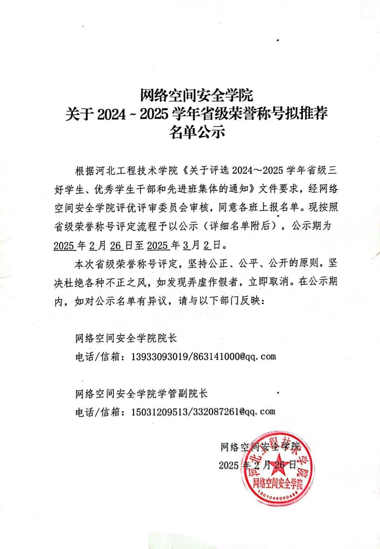太阳集团tyc234cc关于2024~2025学年省级荣誉称号拟推荐名单公示