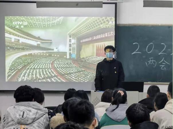 由于疫情原因,活动主要以各班为单位,部分以个人、宿舍为单位进行,通过学习强国、人民网、新华网、中央人民广播电台、中央电视台等平台收看了“两会”开闭幕式等有关报道,进行线上或线下学习并领会会议精神。各班将所看所学所感在观看结束后进行交流讨论,并进行活动总结。