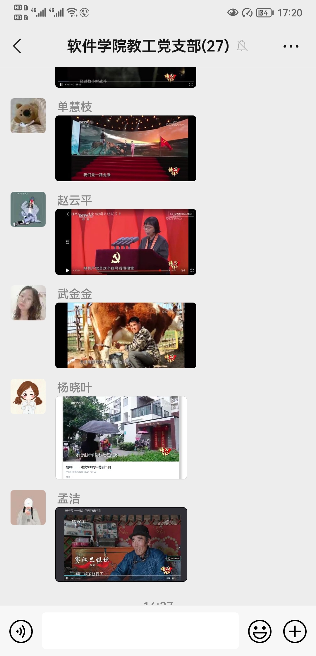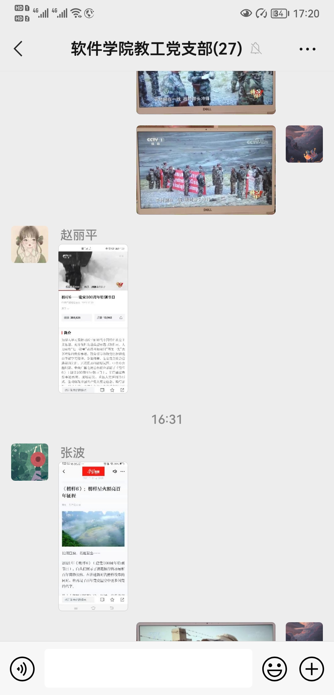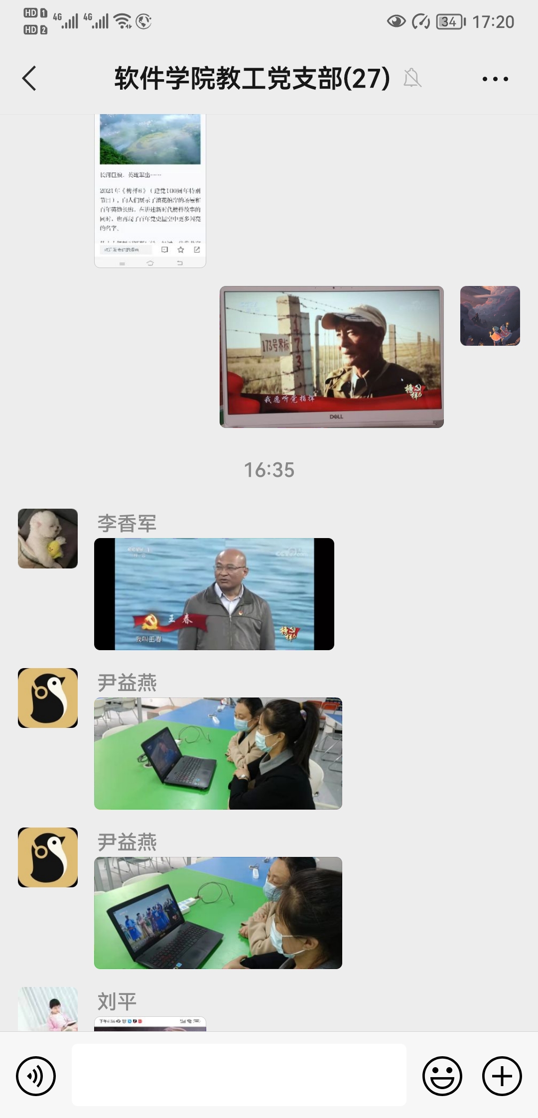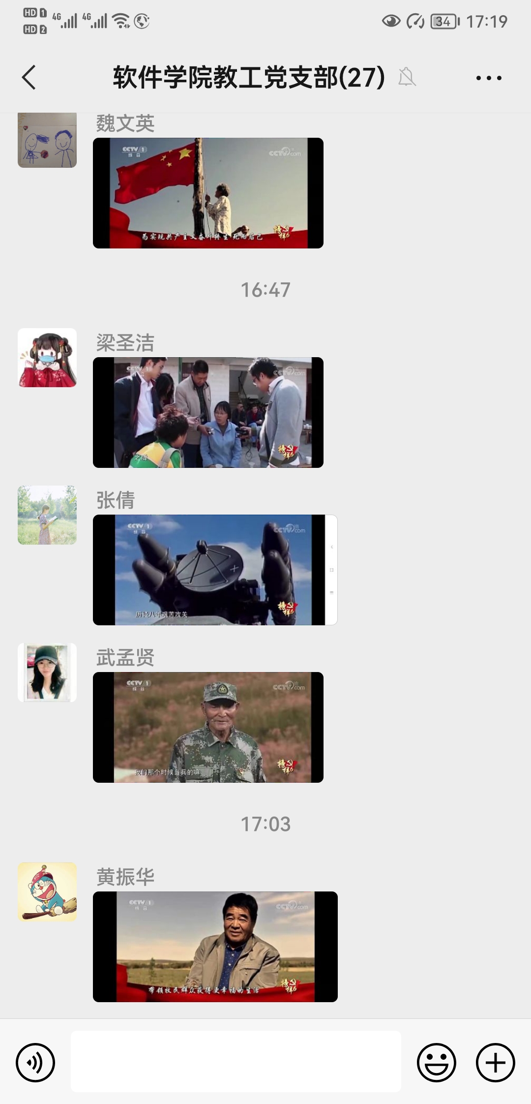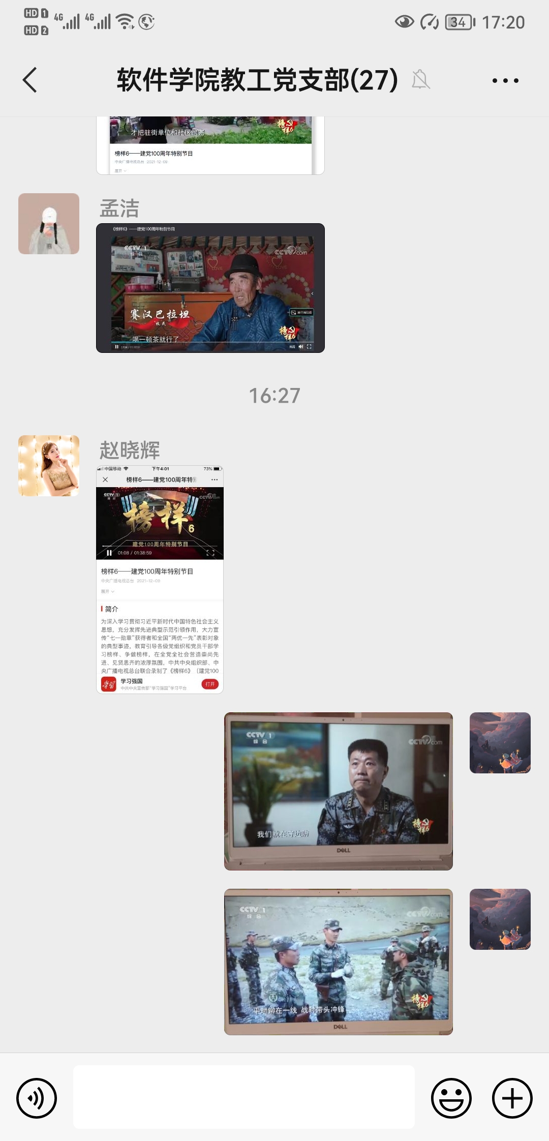 根据软件学院教工党支部“两学一做”计划,2022年3月29日下午16:00,软件学院教工党支部召开党员学习大会,观看《榜样6》纪录片。基于疫情防控,通过党员同志们自行观看的方式进行,软件学院27名党员同志们,积极按时观看,并及时分享观影过程中的图片,观影结束后,大家将撰写观影心得体会。