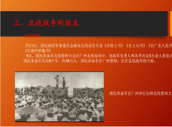 网络空间安全二班的王庆森同学重点介绍了1916年袁世凯死后,北洋军阀分裂为直、皖两系,奉系军阀和其他地方军阀也相继而成。各军阀为争夺地盘,逢年混战,民不聊生。打倒北洋军阀,结束封建军阀的黑暗统治,已成为中国人民的迫切要求。孙中山先后组织北伐,均未如愿。1926年1月,国民党第二次全国代表大会提出打倒帝国主义、打倒军阀,统一全国的纲领。于6月5日,国民党中央执行委员会临时全体会议通过迅速出师北伐案。