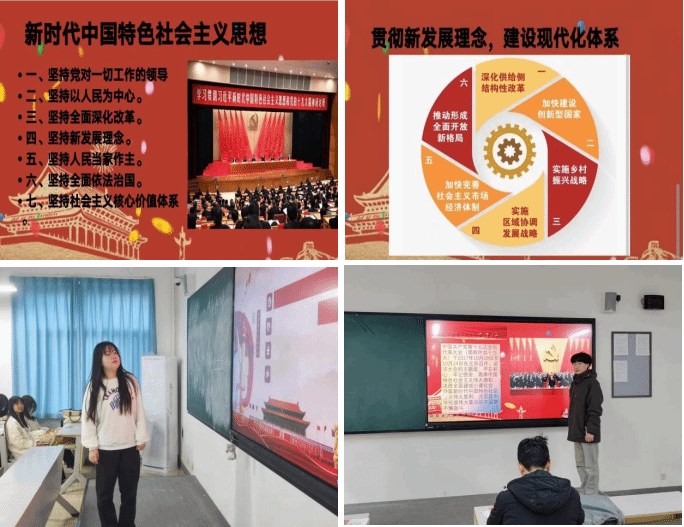 2022级电子商务一班的兰盈盈同学首先为同学们介绍到十九大召开的国际国内形势、时代背景、历史条件、出席大会代表情况、大会议程、大会通过的文件成果等在许多方面都有别于历次党的全国代表大会,奠定了在决胜全面建成小康社会实现中国梦时期乃至更长远时期中国特色社会主义大发展的纲领的、策略的和政治的、组织的基础,对中国特色社会主义前途命运具有里程碑式的重大影响、重大意义、重大价值。