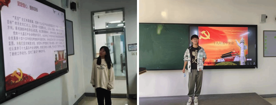 主讲同学经过几天的准备制作了PPT,使得同学们更加清晰的了解十九届五中全会。主讲同学的演讲全面丰富,讲了此次会议的内容和精神,在老师和同学的共同努力下这次的会议圆满地举行。