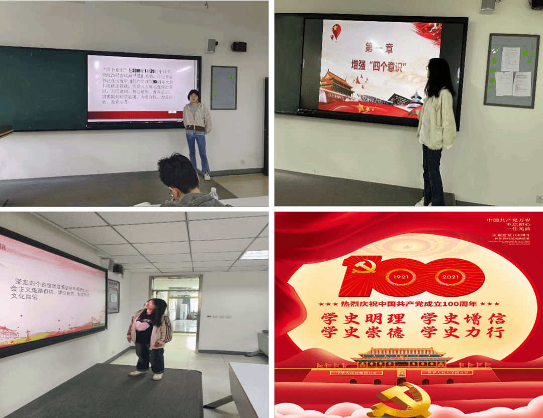 2016年1月29日,中共中央政治局会议提出增强“四个意识”,即“政治意识、大局意识、核心意识、看齐意识”。2016年7月1日,习近平总书记在庆祝中国共产党成立95周年大会上强调,中国共产党人“坚持不忘初心、继续前进”,就要坚持“四个自信”,即“中国特色社会主义道路自信、理论自信、制度自信、文化自信”。从我们党提出增强“四个意识”,增强“四个意识”、坚定“四个自信”、做到“两个维护”作为一个整体性要求提出,我们党在新时代把党的政治建设摆在首位,以党的政治建设为统领,全面推进党的政治建设、思想建设、组织建设、作风建设、纪律建设。为让大学生担当时代使命,学史爱党、学史爱国、学史爱人民,我院开展以“四个意识、两个维护、四个自信”为主题的四史专题教育,2022级电子商务1班、软件工程4班、软件工程5班和软件工程6班的同学们发表了激情四射的演讲。