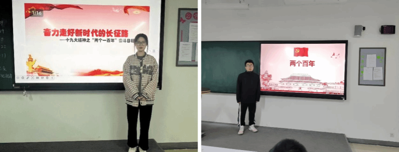 2022级软件工程六班的李梦露同学为同学们说明了在不同的历史时期,我们党总是踏着时代的脚步、把握现实的要求、根据人民的意愿,提出各个不同历史阶段的奋斗目标和行动纲领。从推翻“三座大山”到建设新中国,从解决温饱问题到全面建成小康社会,从基本实现现代化到实现民族复兴的中国梦,每一个目标、每一个纲领的提出,都凝聚了全党奋进的力量,照亮了人民前进的方向。中国特色社会主义发展的阶段和所处的时代不同,确定的目标也会不同。