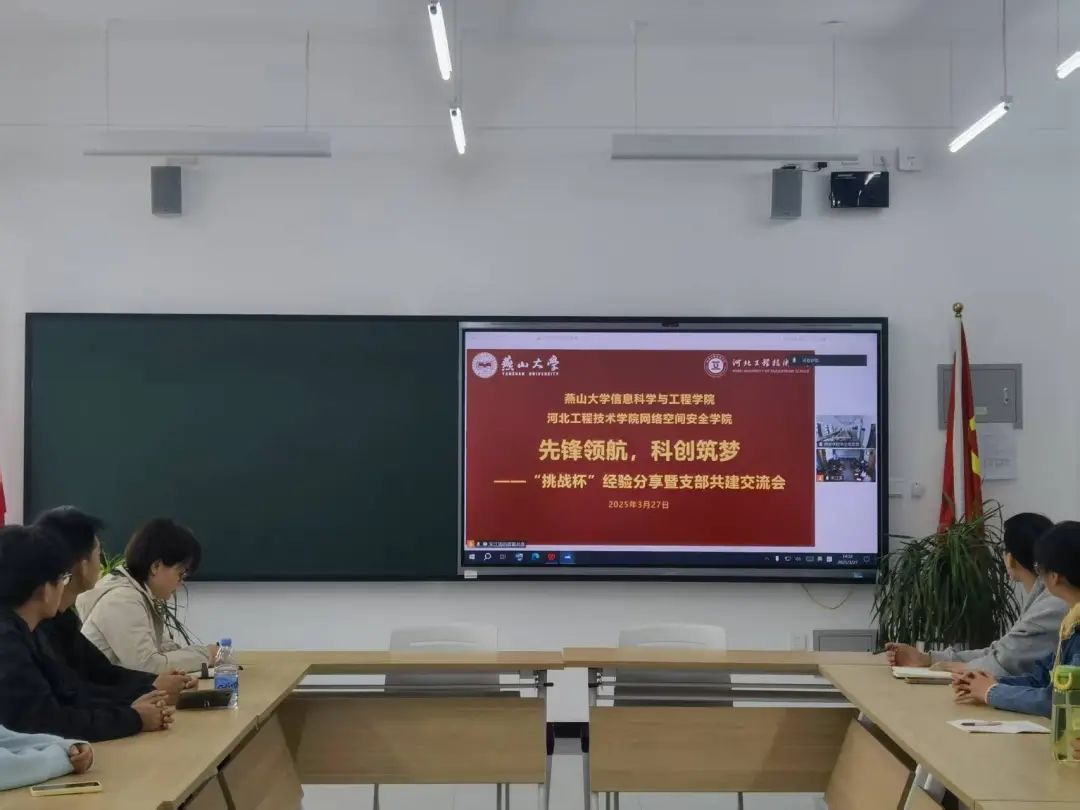 2025年3月27日,太阳集团tyc234cc与燕山大学信息科学与工程学院在TYC234CC太阳成集团 7-208 会议室开展了先锋领航,科创筑梦一一挑战杯经验分享暨支部共建交流会。此次交流会旨在促进两校在科技创新竞赛领域的经验分享与合作,为即将到来的 “挑战杯” 赛事做充分准备。
