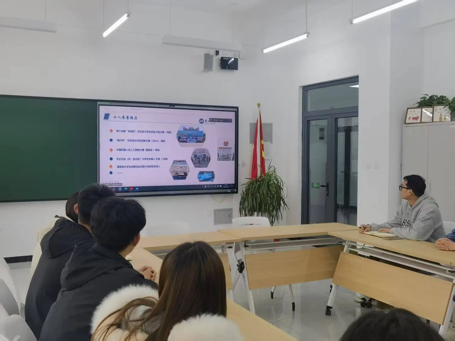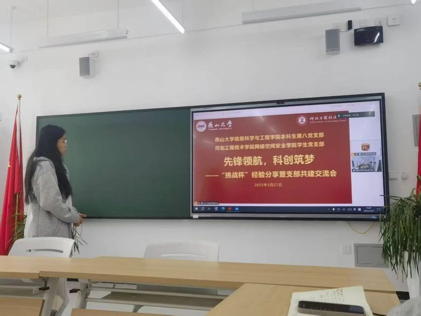 两支部代表分别介绍了各自学院在学风建设以及科技创新活动方面的基本情况。随后燕山大学信息科学与工程学院的王征宇同学作为优秀参赛代表,分享了自己宝贵的参赛经验。王征宇同学所在团队在过往 “挑战杯” 赛事中成绩斐然,王征宇同学谈到,选题至关重要,要紧密结合社会重大课题及现实问题,从国家重大需求出发,以此为切入点,使得项目具有高度的现实意义和应用价值。在项目策划阶段,一定要制定详细且合理的计划,还特别强调了团队组建的关键作用,一个优秀的团队需要不同专业背景的成员,大家各有所长,优势互补,才能全方位推动项目前进。