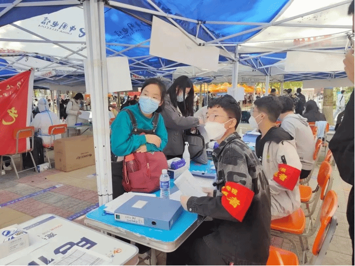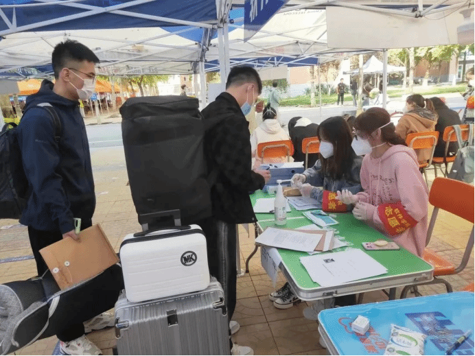 领导、老师、同学...全员上阵,相继来到迎新现场,做好迎新准备工作服务