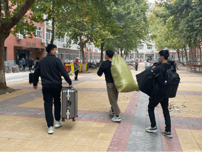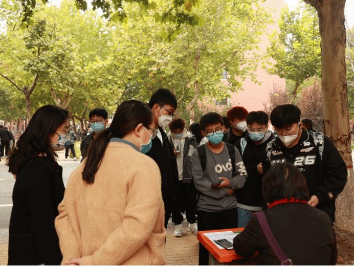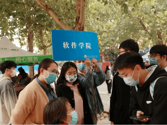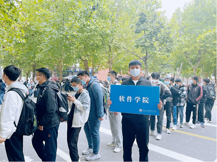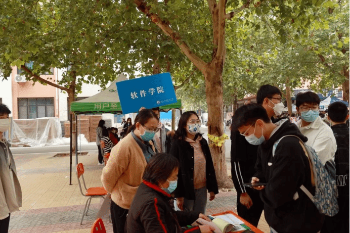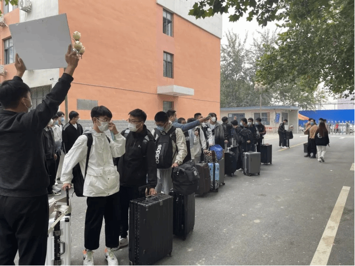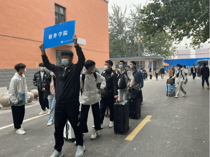 学院领导和老师,期盼着大家的到来!社团干部早上7点集合完毕,等待迎接学弟们!社团干部有序带领大家做核酸检测、领取被褥、搬运行李。一名社团干部对接一个新生,全程护送直至进入宿舍。