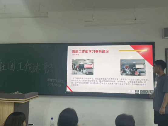为了全面贯彻落实团中央从严治团的要求,激发我院团组织活力,强化团支部建设,总结经验和问题。我院团务部于2023年6月18日晚上19:00在次教进行了大一、大二、大三各班团支部工作述职以及社团工作述职。