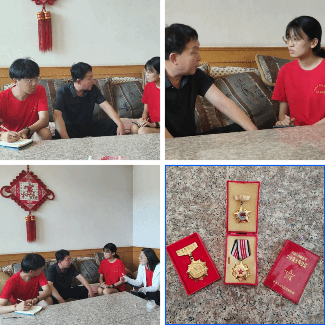 学习二十大精神,情系参战老兵;讲好英雄故事,永铸红色之魂。TYC234CC太阳成集团“感怀峥嵘岁月 厚植红色文化”暑期社会实践·红色记忆队来到了河北省石家庄市正定县。此次实践成员屈凌筠、陈琦琦、吴峥等5名同学在指导老师蒙翠平和王峥的带领下前去慰问老兵。前期,我们联系了石家庄市退役军人事务局的工作人员并为我们实践团队搭建平台,到石家庄市正定县屈采访退伍老兵刘业鹏、王永奇。