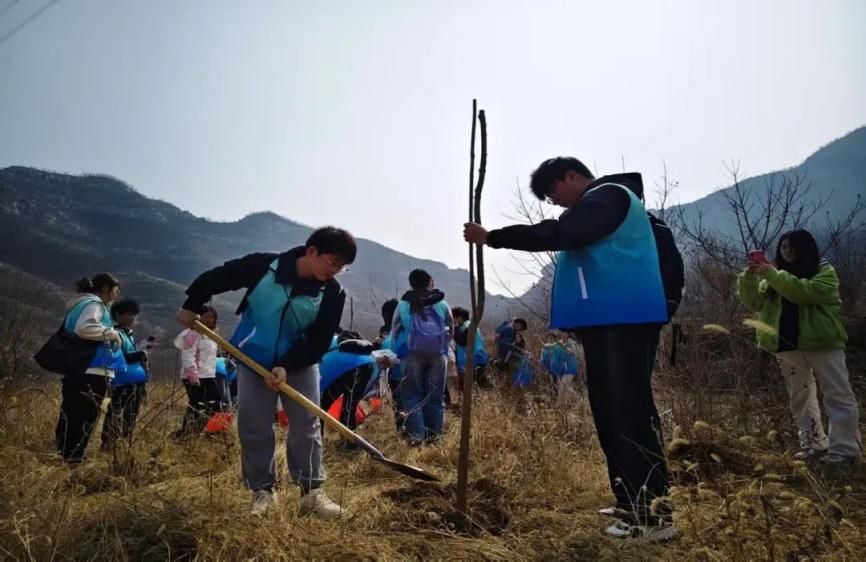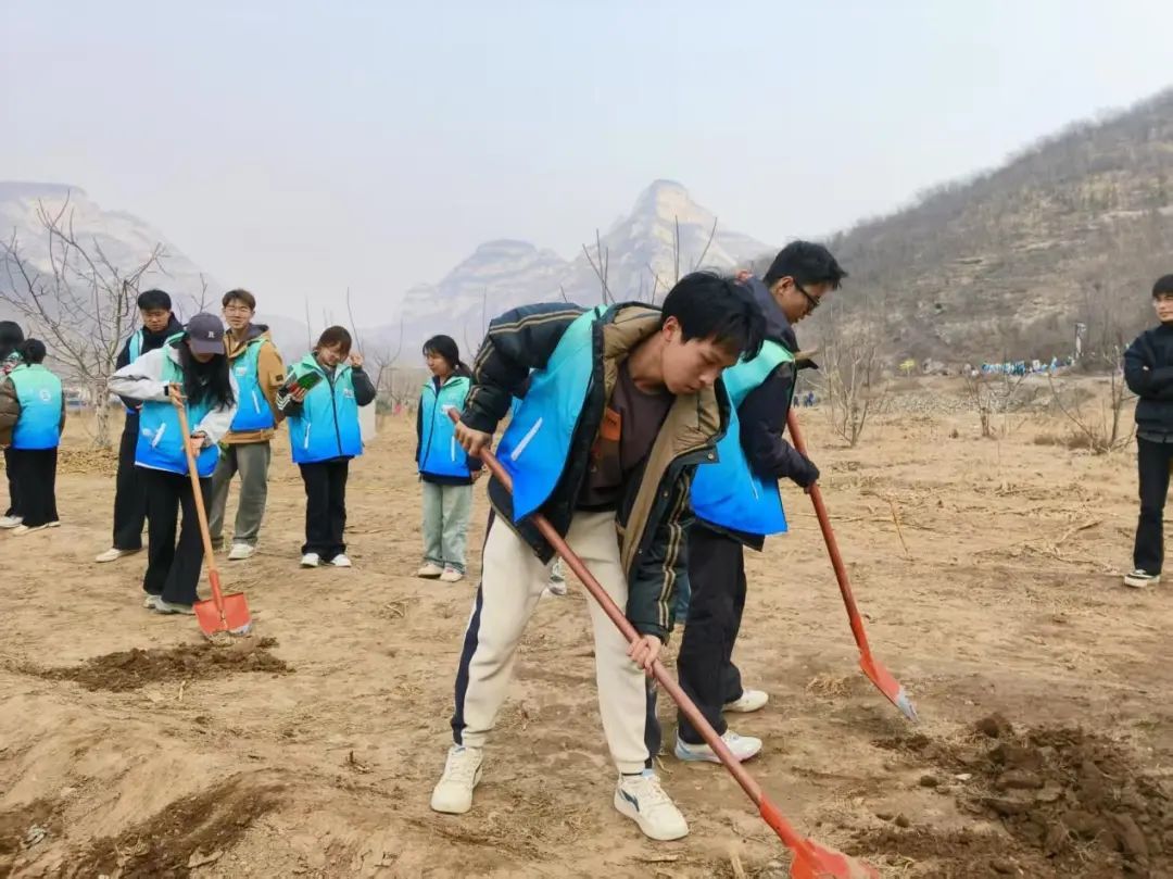 经过3个多小时的不懈努力,志愿者们成功为荒山添上一抹新绿。参与活动的2024级学生董福星在接受采访时说道:“看着亲手种下的树苗在春风中挺立,内心充满成就感。希望这些树苗能与我们一同茁壮成长,为美丽河北的建设贡献力量。”