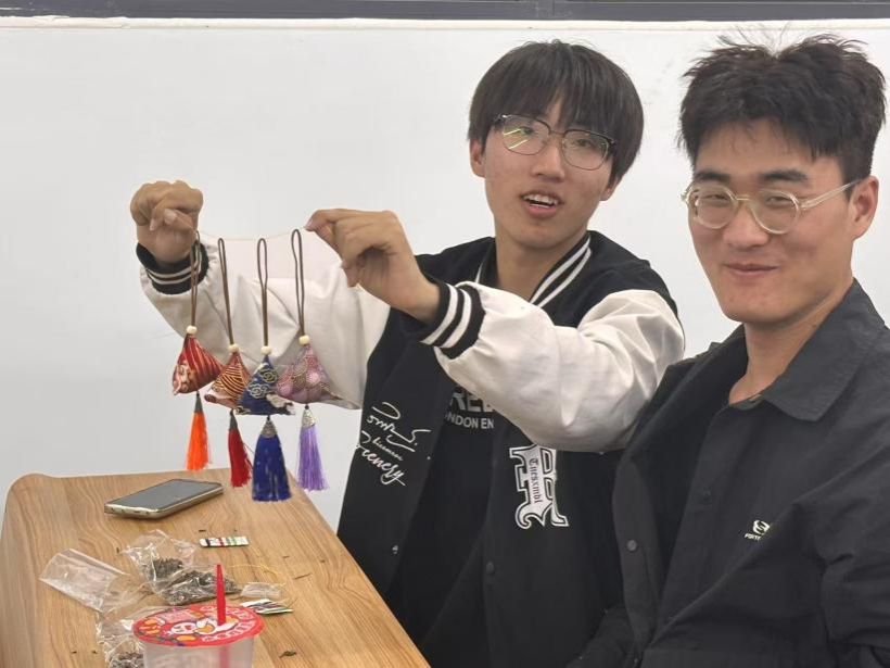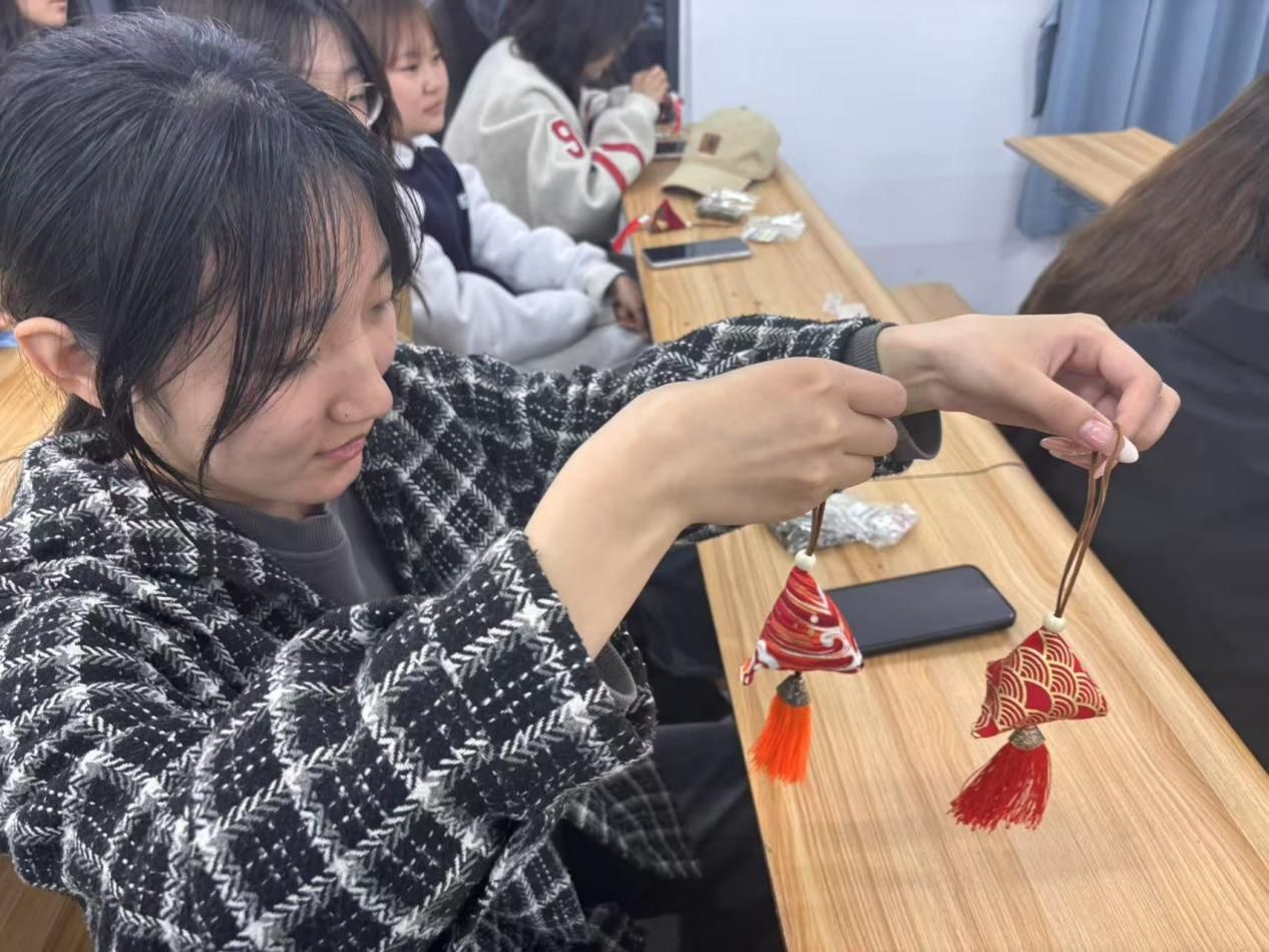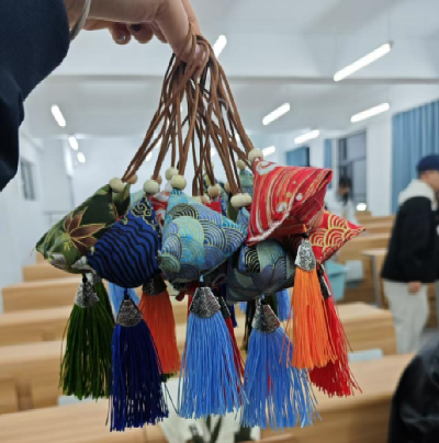 制作环节,社团工作人员将材料分发给学生们。第一项是进行布料的裁剪,他们小心翼翼地按照模板剪出形状,设计香囊的外形。填充香料也是重要一步,大家仔细地将各种香料混合,感受着春天的气息。在缝合过程中也遇到了不少困难,但在同学的帮助下,他们逐渐掌握了技巧。系上精美的丝线,一个个色彩斑斓、造型各异的香囊便呈现在眼前。