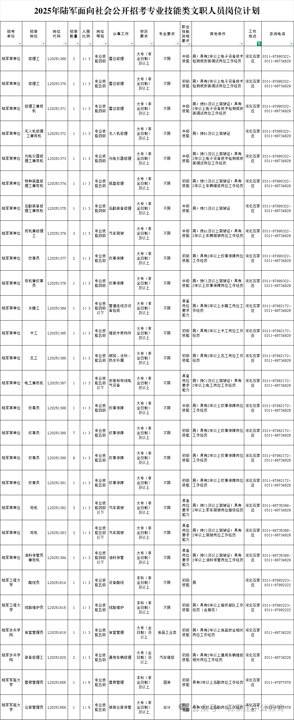 2025年陆军面向社会公开招考专业技能类文职人员工作最终解释权归陆军政治工作部所有。
