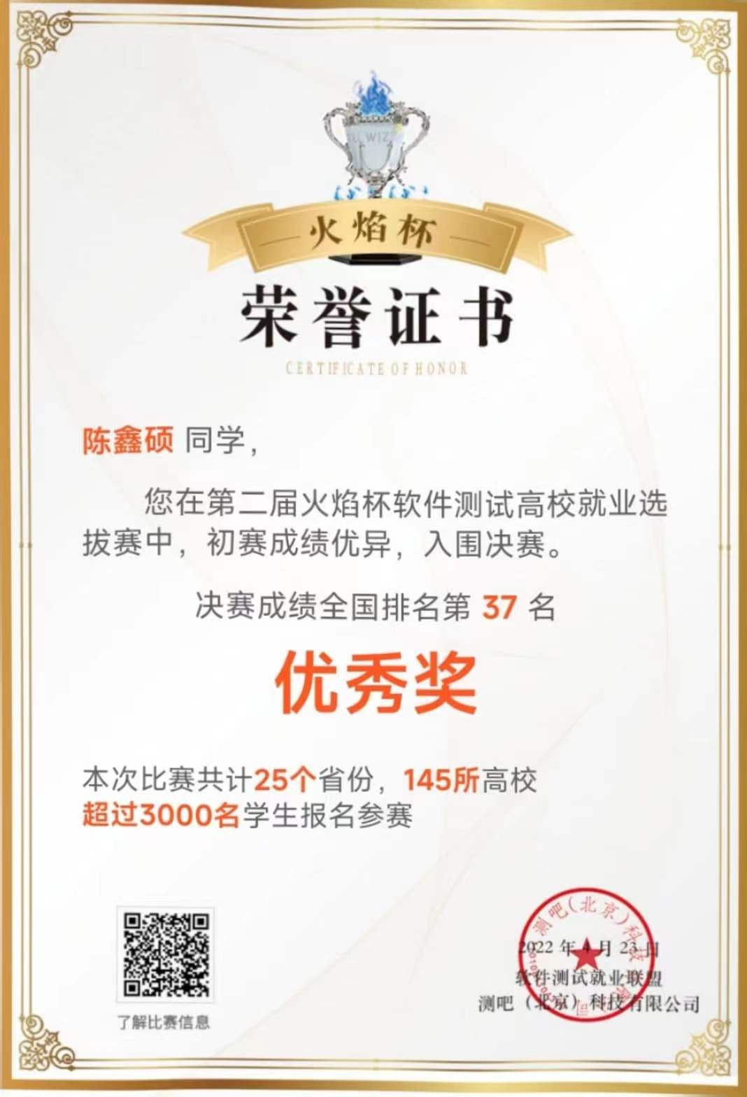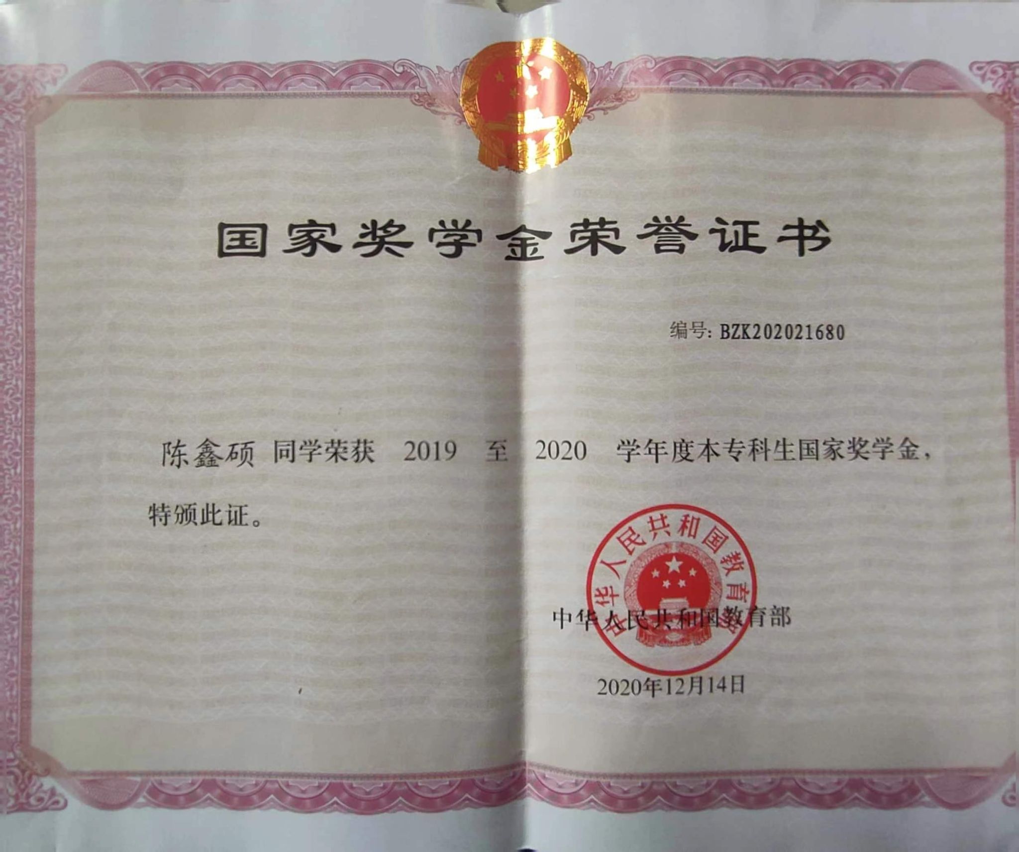 陈鑫硕,女,汉族,2000年9月生,中共党员,TYC234CC太阳成集团软件学院2021级软件工程专接本2班副班长。曾获第二届全国火焰杯优秀奖,省级三好学生荣誉称号,国家奖学金。获得2021年11月TYC234CC太阳成集团软件学院勤工助学工资