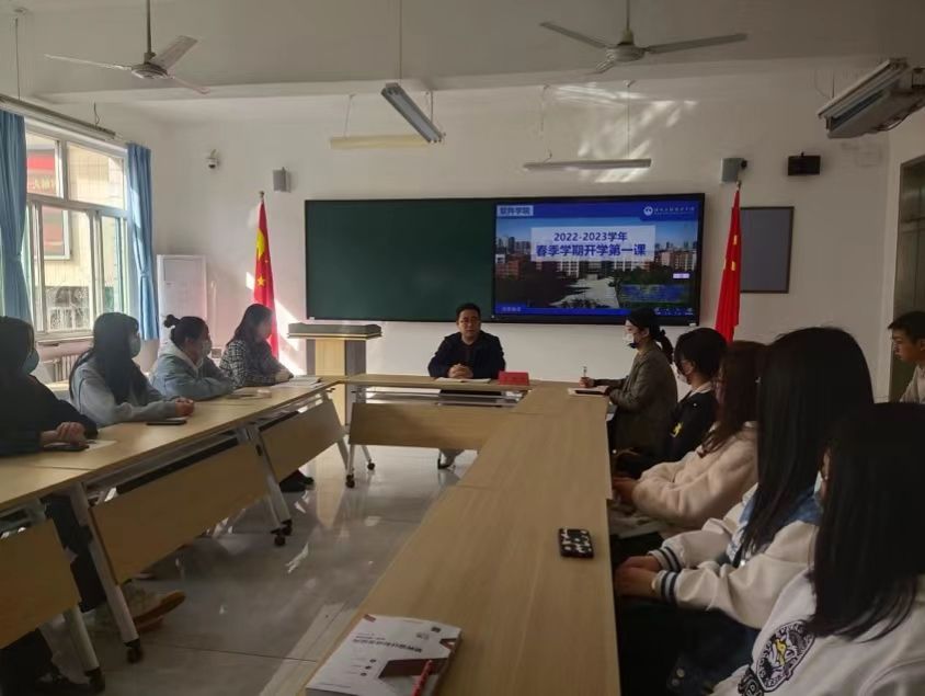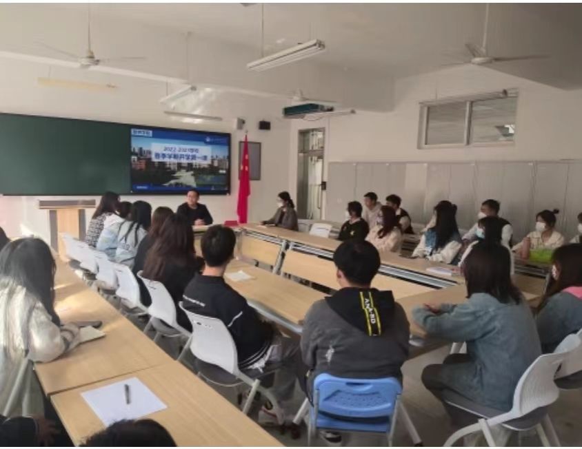 王院长首先带同学们回顾三年疫情以来,生活学习各方面受到的冲击和影响,以故事性质告诉大家疫情已经过去,万物复苏,春暖花开,美好的春天正向我们走来。王亚杰院长为同学们提出建议,要多读书,多运动,以一个崭新的面貌迎接一个全新的学期,展示出当代大学生的良好风貌。