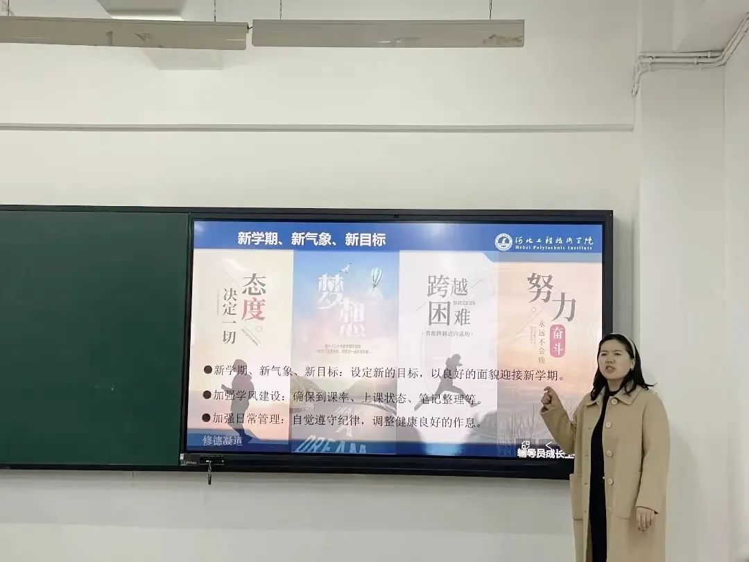 为同学们讲解"假期﹣开学"适应期的心理转换调节方法,针对春季学期常见的学业压力、人际关系、情绪调节等心理困惑,指导学生运用好积极心理学知识。做好新学期的准备,促进自尊自信、理性平和、积极向上的校园心态。