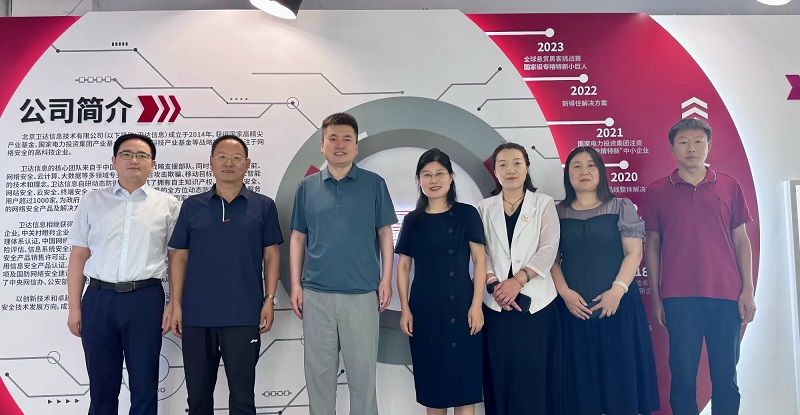 签约授牌仪式后,双方代表就校企合作的具体内容、实施方式及未来规划进行了深入座谈交流。双方表示,将秉持“优势互补、资源共享、互惠互利、共同发展”的原则,深化在人才培养、科学研究、实习实训、学生就业等方面的务实合作,促进网络空间安全学科建设和专业人才培养。随后,在张长河董事长的的陪同下,学校代表一行参观了北京卫达信息技术有限公司的产品和荣誉展厅,进一步了解了企业的运营情况和企业文化。