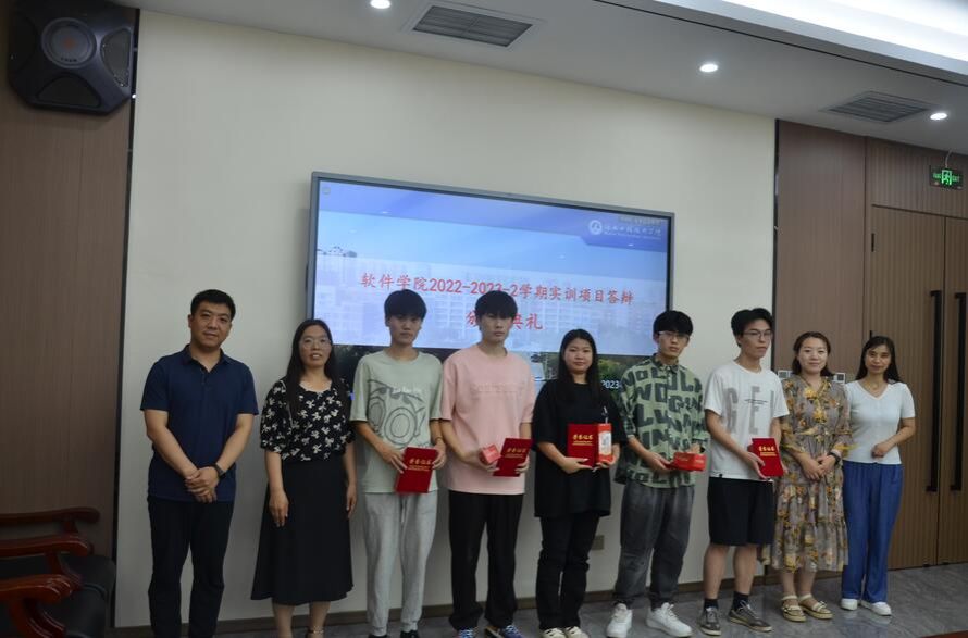 6月21日下午,教学科研部副部长包丽媛,软件学院院长赵冬梅,企业院长胡丽莎,教学副院长刘翠焕、张波,软件工程专业教师代表宋红梅,实训指导教师代表孙伟光及8个小组的同学们在图书馆第二会议室完成了优秀项目评审及颁奖。各个小组分别向大家展示了自己的项目,阐述功能及制作过程,回答评委的提问。最终选拔出一等奖1组,二等奖3组,三等奖4组。