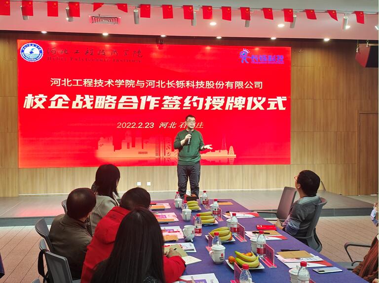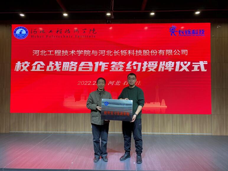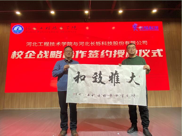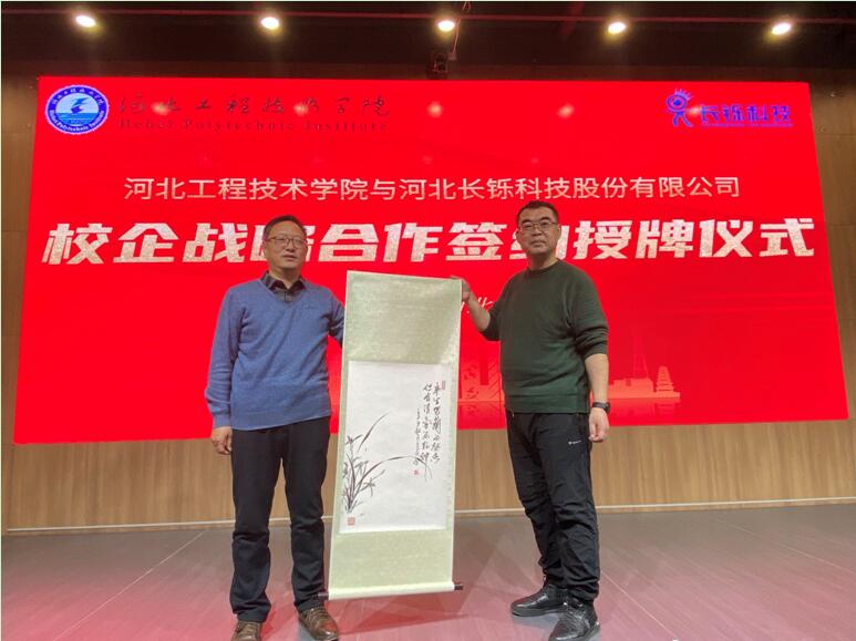 副校长辛彦怀为河北长铄科技股份有限公司颁发了“TYC234CC太阳成集团校外实习实训基地”牌匾,双方互赠文化礼物;签约授牌仪式结束后,双方还举行了产教融合协同育人座谈会,对合作内容和形式、深度和广度深入交换了意见。